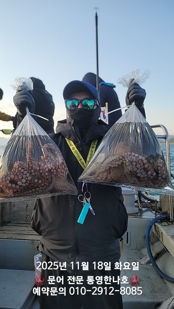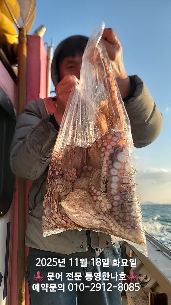 | 제목 : 통영한나호 키로오버 돌문어 전원 손맛 1수 이상씩 챙겨가실게요 | ||